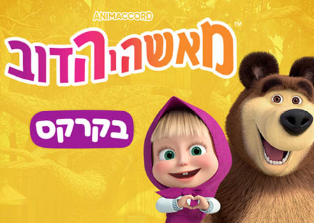 “מאשה והדב בקרקס” – מופע לכל המשפחה! מאשה – אחת הדמויות המצוירות האהובות והמצליחות בכל הזמנים – יוצאת להרפתקה חיה על הבמה יחד עם הדב הנאמן שלה! הצטרפו אליהם לקרקס...